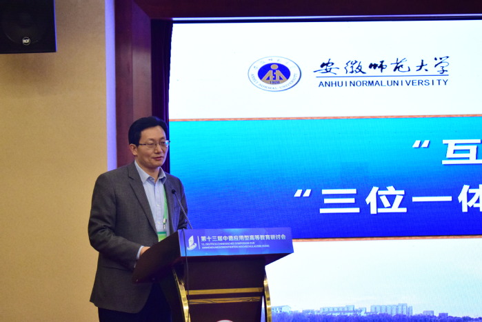 会议伊始,张庆亮结合“互联网+”时代背景,从高等教育改革的理念和实践等方面展开论述。他指出,第四次工业革命催生高等教育改革,在此背景下安徽师范大学坚持以学生为中心的教育理念,深度融合课内与课外、线上与线下、虚拟与现实三个“一体化”主张,形成开放式、个性化、多样化的新型教学模式,致力于培养大学生完善的新时代君子人格。