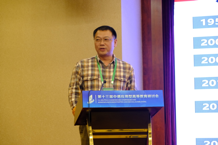 托马斯·霍夫曼以《奥斯纳布吕克应用科学大学中德合作硕士专业建设中与企业的融合》为题作报告。他表示,学校应采用专业理论知识与实践相结合的教学方式。在中德合作硕士专业建设项目中,不仅要开设相关研讨课,同时也与企业合作开展研发项目。企业对实践技能的高要求间接推动学校对学生的实践技术培养,以增强其创新能力和就业竞争力。