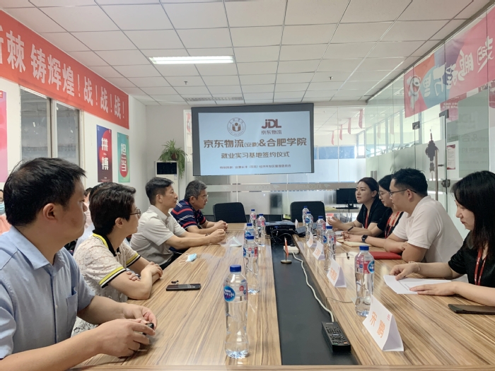 在(京东物流)安徽省京邦达供应链科技有限公司和世纪金源生活服务合肥公司,我校经济与管理学院分别与两个企业举行了就业基地签约授牌仪式。仪式上,企业负责人表示将会努力做好学生就业工作,希望与学校在人才培养、产教融合、就业实习等方面有更加深入的交流。