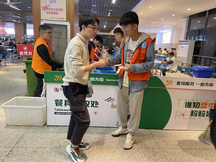 一粥一饭,当思来之不易;半丝半缕,恒念物力维艰。11月1日,校青年志愿者联合会组织的“光盘行动,践行勤俭”活动拉开帷幕。同学们凭借无食物剩余的盘子就可在食堂餐具回收处领取一张“光盘券”,集齐一定数量的“光盘券”即可兑换小礼品。活动期间,每日被送回餐具回收处的“光盘”数量明显增加。