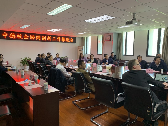 我校中德校企协同创新工作推进会于4月28日下午在行政楼八楼东会议室召开。合肥学院副校长卢平出席会议,发展规划处处长缪群道、科技处处长汪潘义、中德教育合作示范基地(基金)管理办公室主任刘金平,以及中德生物质研究中心(安徽)、中德固体废弃物研究协同创新中心、中德先进制造业促进中心、绿色助剂技术创新中心等中德合作机构负责人参加会议。会议由中德校企协同创新中心主任李长花主持。