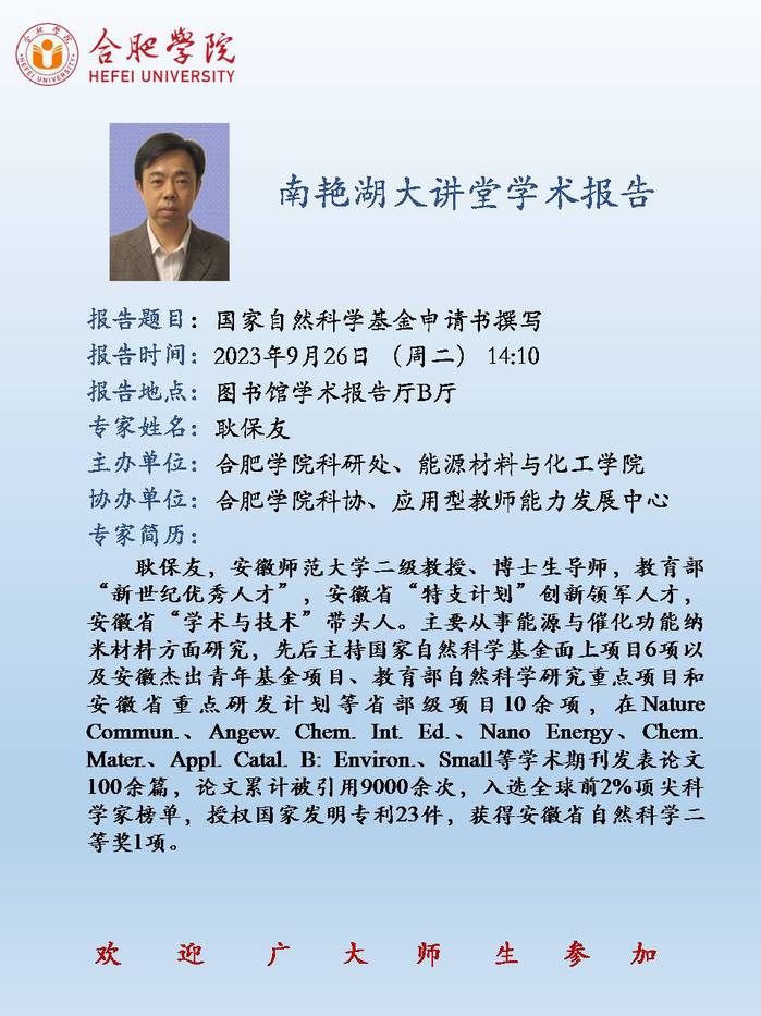 【南艳湖大讲堂】国家自然科学基金申请书撰写