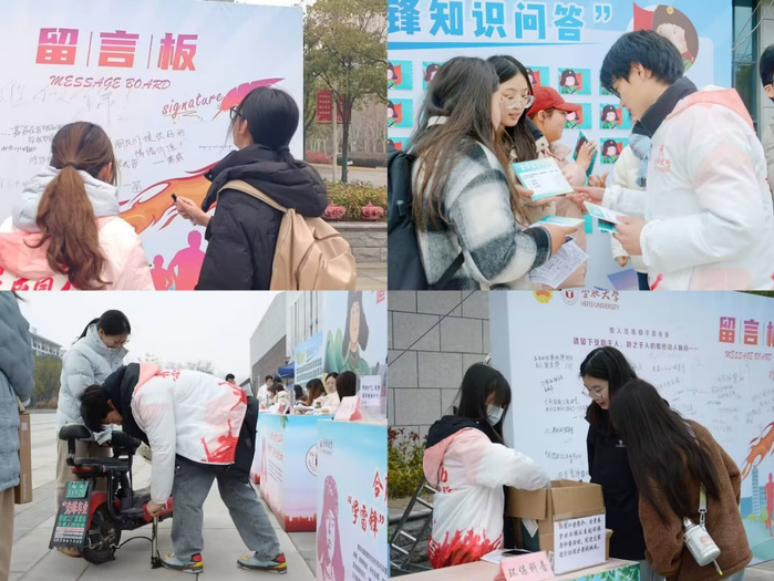 服务驿站映日辉,点亮春日校园美。校青年志愿者联合会设置“追寻雷锋足迹”服务驿站,志愿者们为师生提供眼镜清洗、电脑维修、电瓶车打气、手机贴膜、证件照拍摄、医疗护理、图书捐赠、科普环保等多项公益服务。为吸引更多青年学生参与活动,青志联组织开展“雷锋知识问答”盲盒竞猜和“赠人玫瑰,手留余香”留言活动。活动期间,驿站累计服务近千余人。